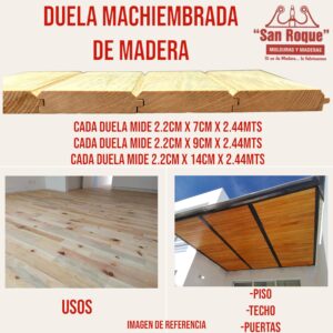 Contamos con varios tipos de madera para trabajos en interior y exterior, la duela se maneja en un grosor de 2cm, con este grosor damos garantía en resistencia para trabajos requeridos en techos o pisos mientras que el lambrin es más delgado 9mm ya que este se utiliza más para acabados en muebles, muros, puertas. Elija el ancho y grosor apropiado para su necesidad con gusto le asesoramos.